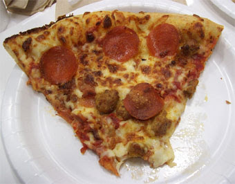 SAM’S CLUB PIZZA: Do the right thing… just get a hot dog next time your at Costco or Sam’s Club. I found myself browsing through Sam’s Club in Murray last week while my car was being detailed across the street at the Supersonic wash. It was lunchtime and I needed more than a bite-sized burrito sample for lunch, so I stepped to the front of the store fully prepared to order one of those hot-dog-and-a drink combos for $1.50. Somehow my completely illogical subconsious mind decided that I wasn’t in the mood for a hot dog… and that what I really wanted was a meat lovers pizza that had been warming under a lamp for 3 hours. Sam’s Club pizza may look good on display under the bright lights… but in reality it’s the nastiest… greasiest… pizza on the planet. After one bite I could almost feel my cholestoral levels surging upwards. All layers of cheese seperated from the crust after the second bite… and by the third bite I was done…. At $1.50 per slice, Sam’s club pizza is perhaps the most overpriced pizza in the world… they should pay people to eat that stuff for them… I can only imagine how bad one of those calzone’s would be!